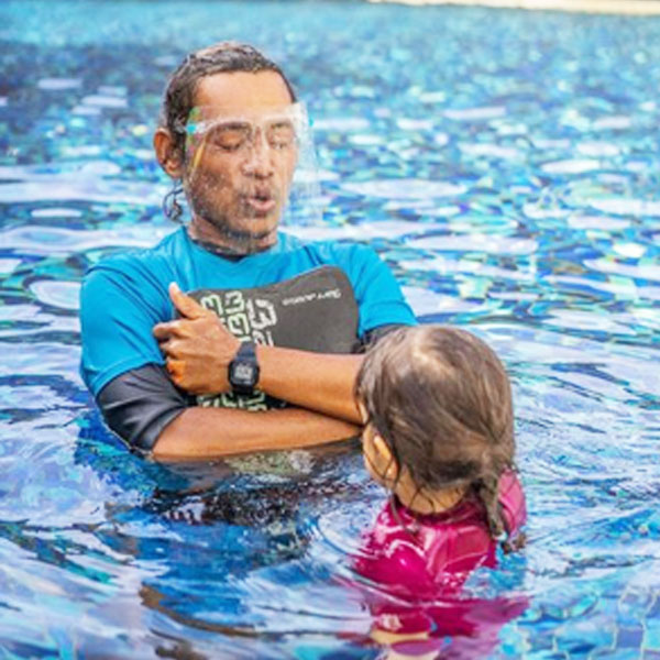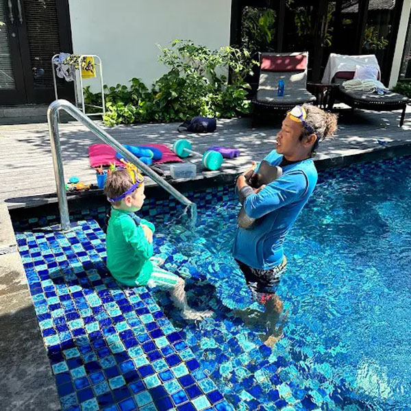 Yogi has 12 years of teaching swimming experiences. He starts teaching swimming when he was studying for his master degree in Bandung – West Java, he taught 7-14 years old kids at public swimming pool for 2 years, then he moved to Bali and worked at Non Profit Organization teaching orphans how to swim for 2 years.